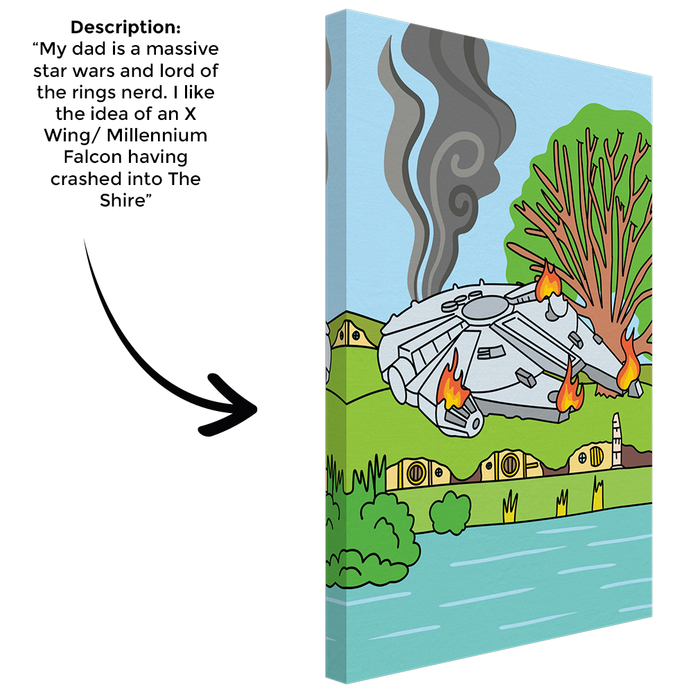 Thank you for the most perfect canvas. I gave it to my brother for his birthday and he loved it so so so much he almost cried. His words were "oh my god that's f***ing amazing, oh my god wow" he couldn't get over how fabulous it was. I too am so impressed and can't wait to order more things in the future. The design was exactly as I imagined and I couldn't be happier. Thank you for creating the most perfect and personal gift for the hardest person to buy presents for!