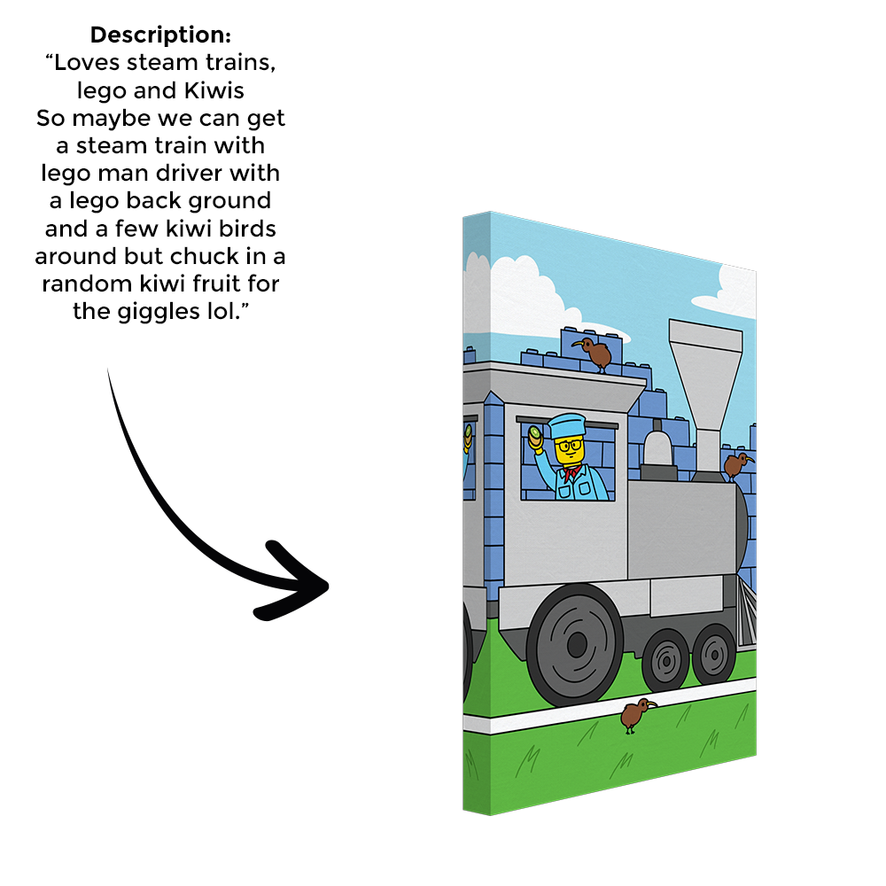 • 📝 Describe what you want included in the box — weird, heartfelt, funny or just a few thinks they love — and our artists hand-draw it from scratch.